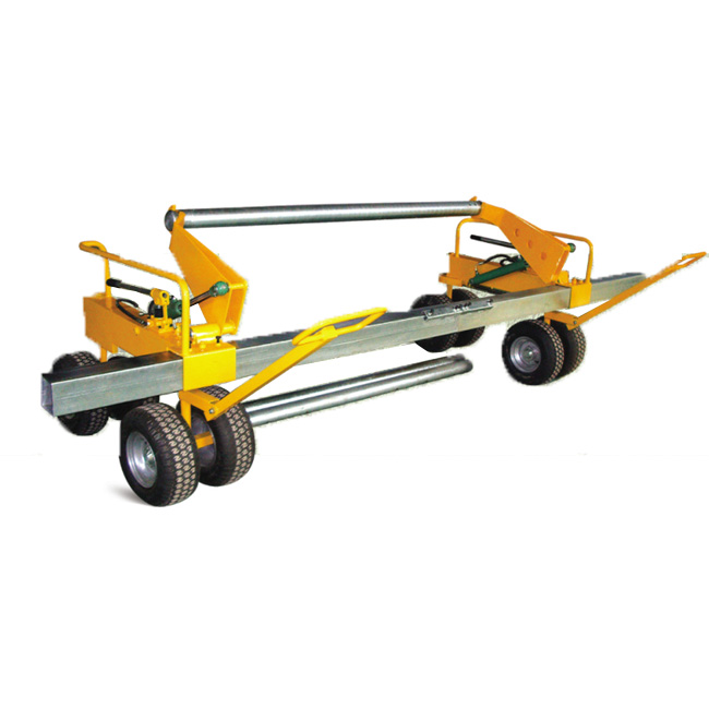 Машина представляет собой специализированную тележку для транспортировки и монтажа искусственного газона, которая позволяет укладывать рулоны искусственного газона шириной до 5 метров.