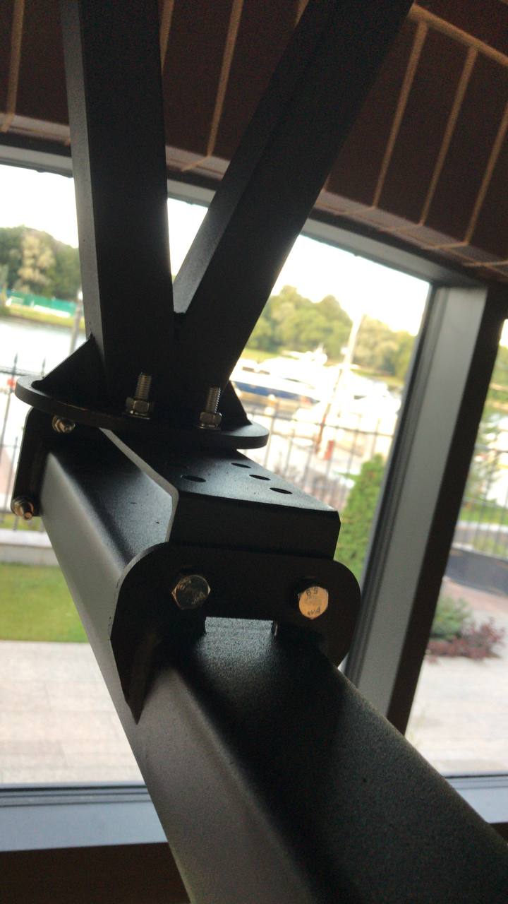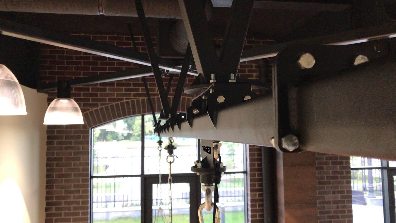Подобные конструкции иногда являются единственным возможным вариантом подвеса боксерских мешков в нужном для заказчика месте на нужной высоте.