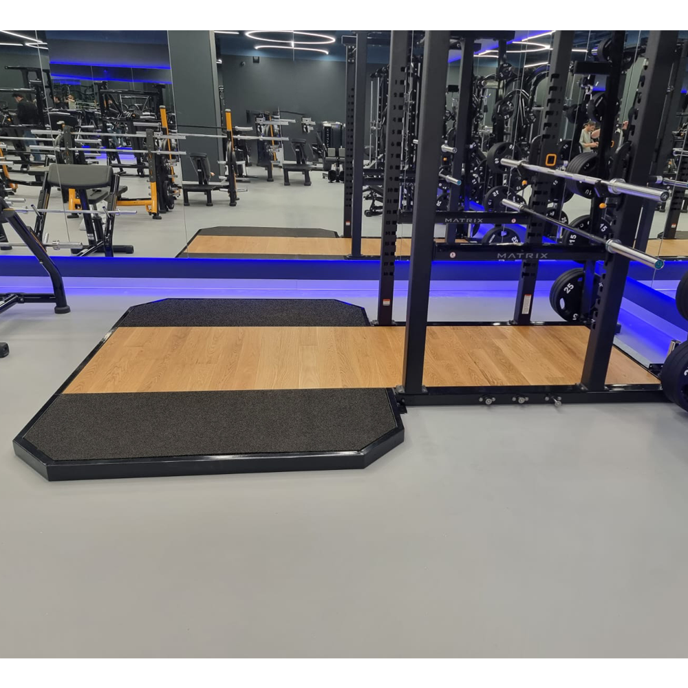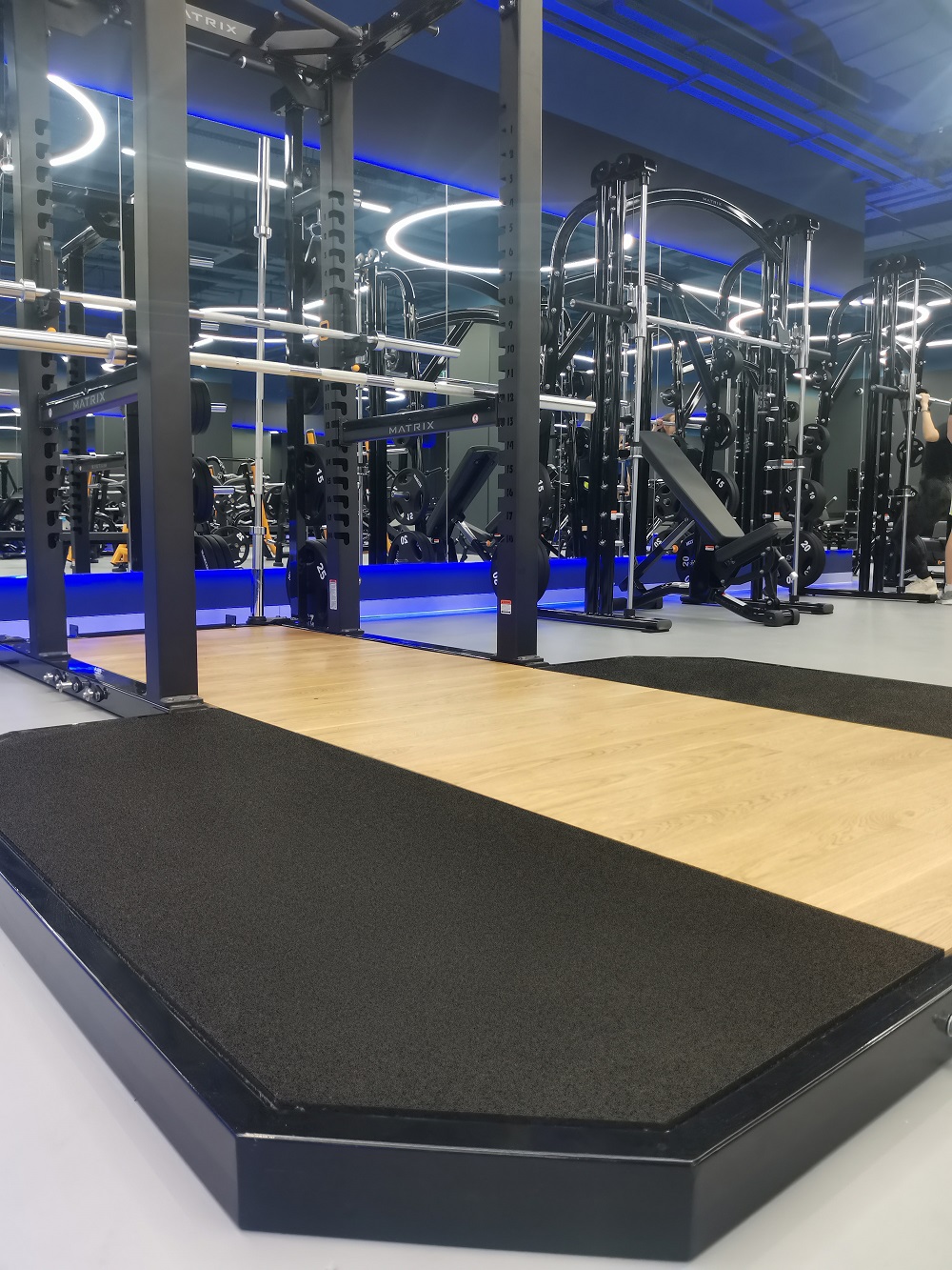 Позволяет эффективно гасить удары падающих свободных весов, тем самым снижая риск повреждения полов и деформации стяжки.