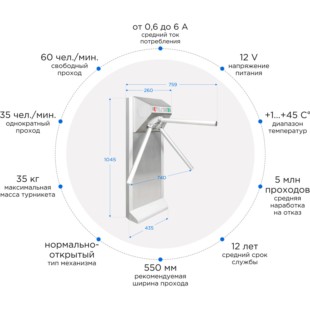 | Масса компактного турникета | не более 35 кг |